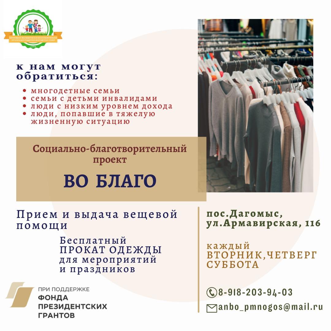 🔵Проект ВО БЛАГО - это прием от населения и организаций благотворительной вещевой помощи и выдача нуждающимся.