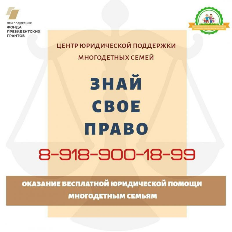 Бесплатная юридическая помощь для сочинских многодетных семейС 1 февраля 2025 по 31 марта 2026 года при поддержке Фонда президентских грантов на территории города Сочи реализуется проект «Центра юридической поддержки многодетных семей «Знай свое право».